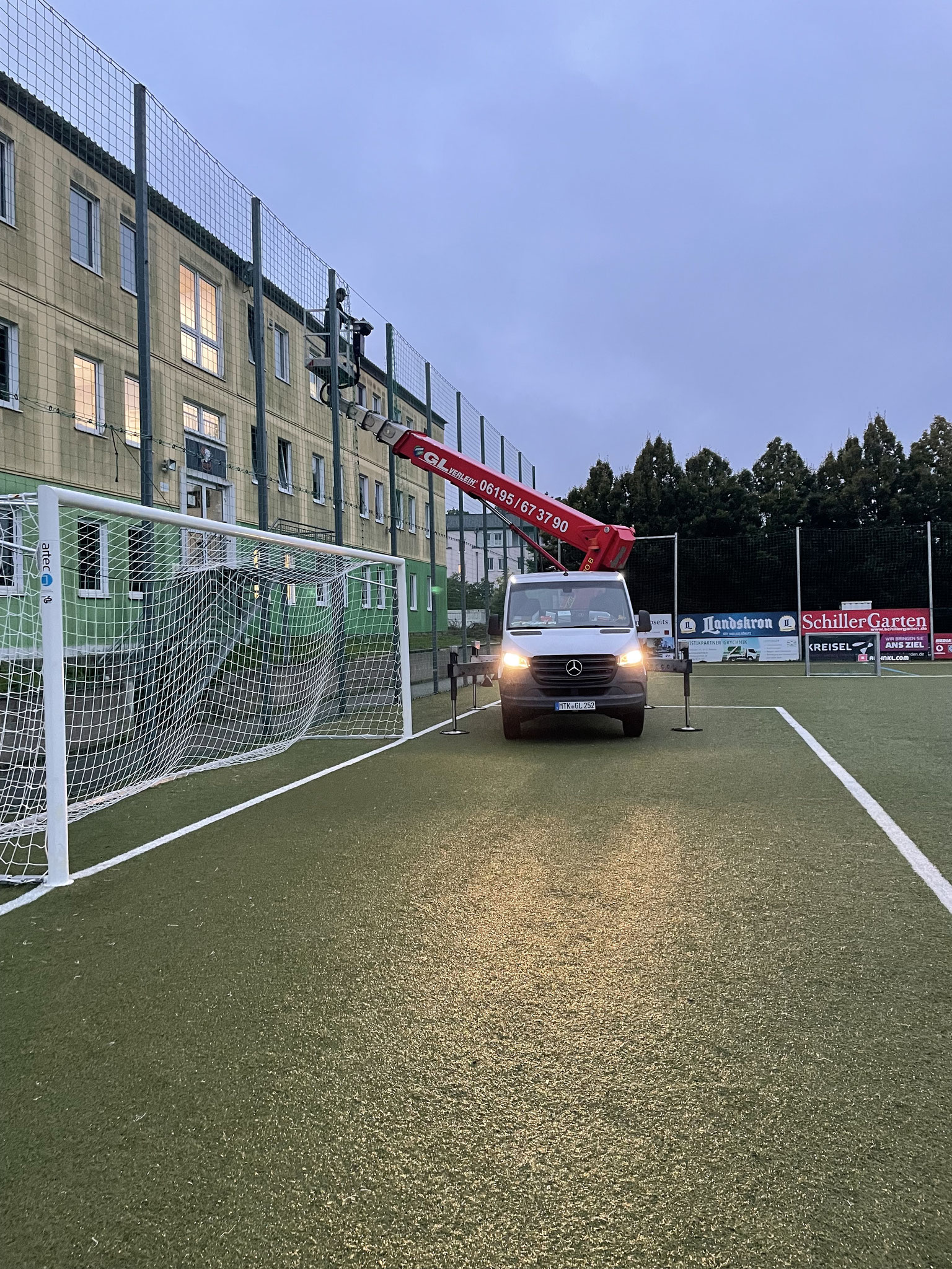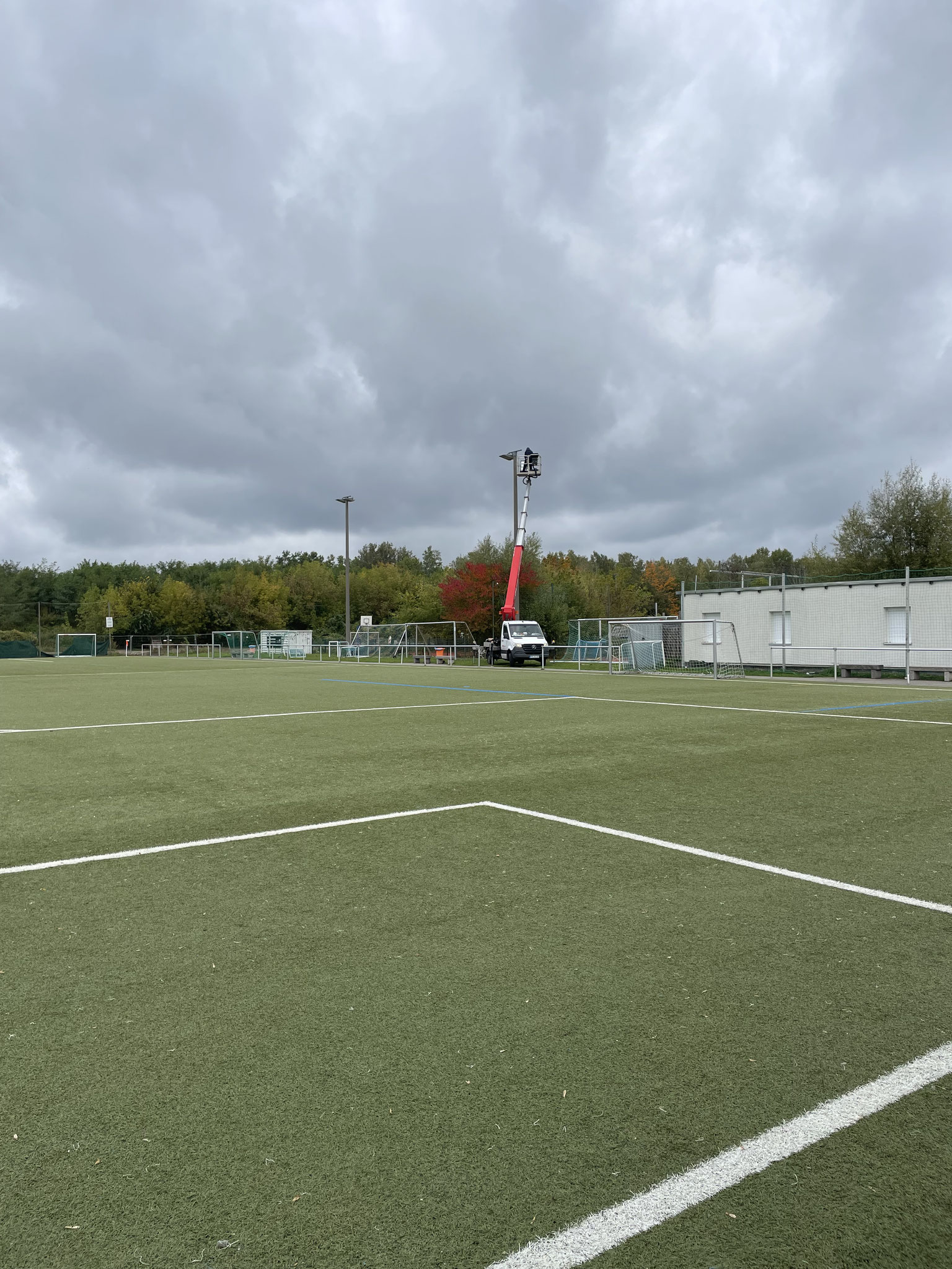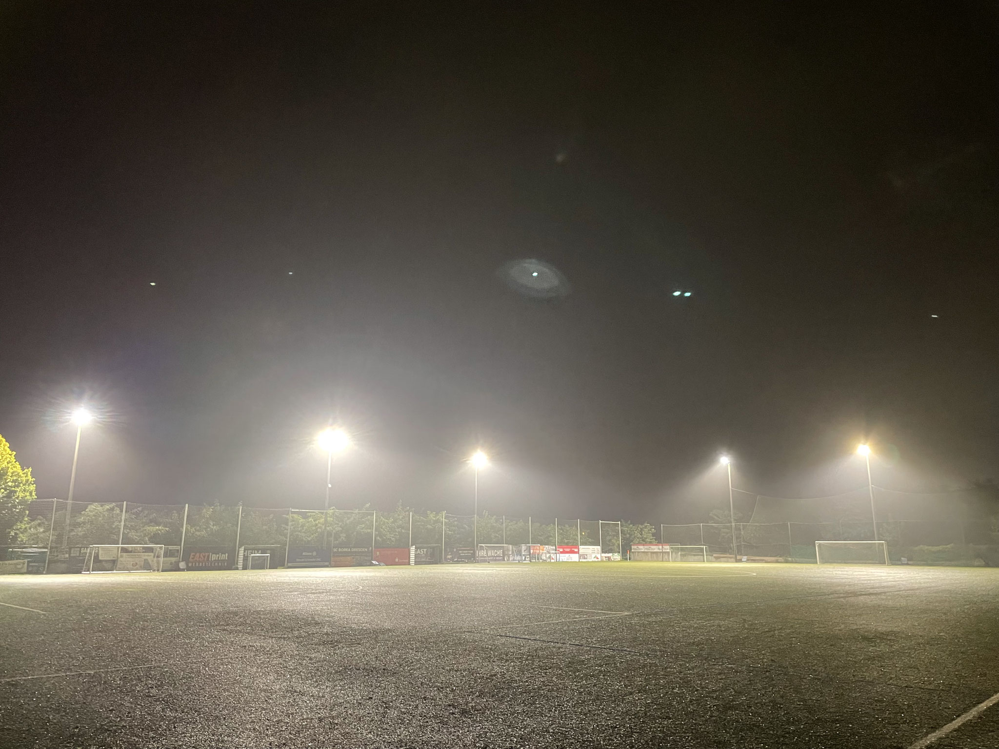 Am 07. und 08. Oktober 2025 wurde auf dem großen Kunstrasenplatz des SC Borea Dresden e.V. (Jägerpark 12, 01099 Dresden) die bestehende Flutlichtanlage erfolgreich auf moderne LED-Technik umgerüstet.